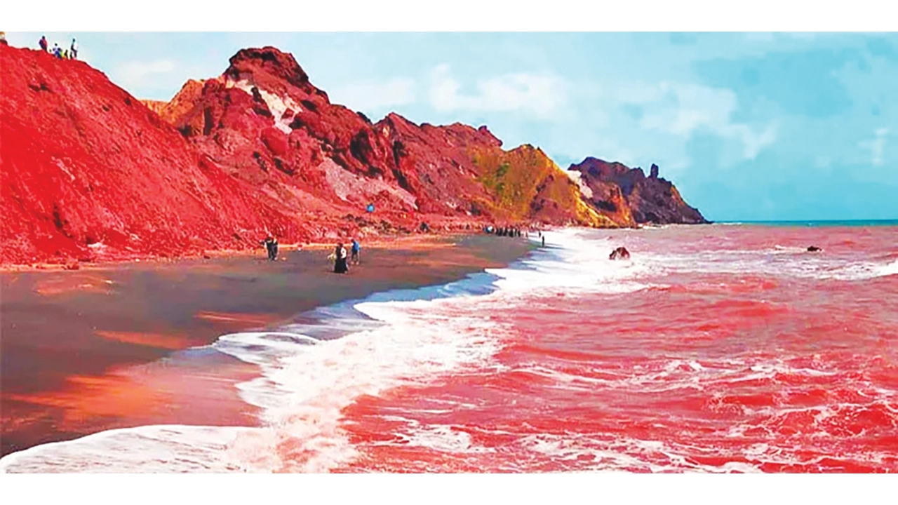 হরমুজ দ্বীপের কূলজুড়ে রক্তলাল ঢেউ!