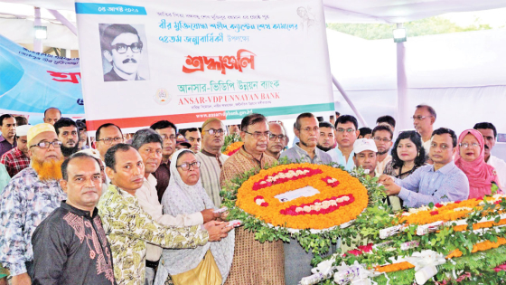 আনসার-ভিডিপি উন্নয়ন ব্যাংকের এমডি মোসাদ্দেক-উল-আলমের নেতৃত্বে ব্যাংকের নির্বাহী ও কর্মকর্তা-কর্মচারীরা ঢাকার আবাহনী মাঠে বীর মুক্তিযোদ্ধা শেখ কামালের প্রতিকৃতিতে পুষ্পস্তবক অর্পণ করেন।