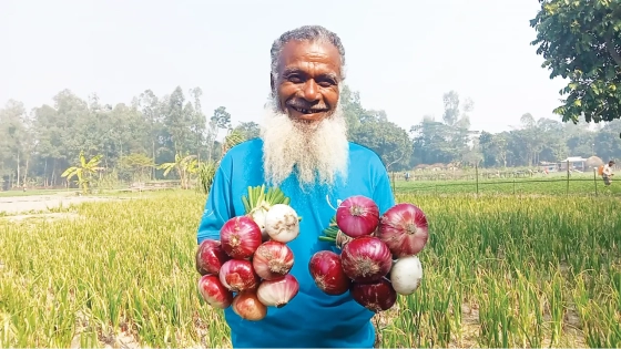 গাইবান্ধার সাদুল্লাপুর উপজেলার জামালপুর ইউনিয়নের কন্দর্প মনোহারপুর গ্রামে গিয়ে দেখা যায়, সারি সারি পেঁয়াজে ভরা নজর কাড়ার মতোই মনোমুগ্ধকর সিরাজুল হকের জমি।