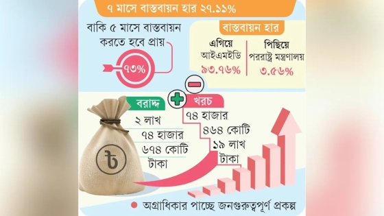 পরিকল্পনা কমিশনের তথ্যমতে, ২০২৩-২৪ অর্থবছরের বার্ষিক উন্নয়ন কর্মসূচিতে মোট ১ হাজার ৩৯২টি প্রকল্প গ্রহণ করা হয়। এগুলো বাস্তবায়নে এডিপিতে বরাদ্দ রাখা হয় ২ লাখ ৭৪ হাজার ৬৭৪ কোটি টাকা। অর্থবছরের ৭ মাসে বিভিন্ন মন্ত্রণালয় ও বিভাগের তত্ত্বাবধানে থাকা এসব প্রকল্পের বিপরীতে খরচ হয়েছে মাত্র ৭৪ হাজার ৪৬৪ কোটি ১৯ লাখ টাকা।
