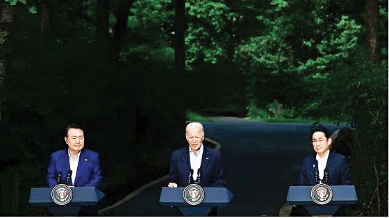 দক্ষিণ চীন সাগরে চীনের বিপজ্জনক ও আগ্রাসী আচরণ ঠেকাতে সাগরপাড়ের দুই দেশ এবং ঘনিষ্ঠ এশীয় মিত্র জাপান ও দক্ষিণ কোরিয়াকে সঙ্গে নিয়ে যুক্তরাষ্ট্র নতুন একটি সামরিক জোট গঠন করছে। যুক্তরাষ্ট্রের প্রেসিডেন্টদের অবকাশযাপন কেন্দ্র ক্যাম্প ডেভিডে স্থানীয় সময় গত শুক্রবার প্রেসিডেন্ট জো বাইডেন, দক্ষিণ কোরিয়ার প্রেসিডেন্ট ইউন সুক ইয়োল এবং জাপানের প্রধানমন্ত্রী ফুমিও কিশিদা এ-সংক্রান্ত বৈঠক শেষে একটি সমঝোতা চুক্তিতে সই করেছেন। খবর বিবিসি ও আলজাজিরার।