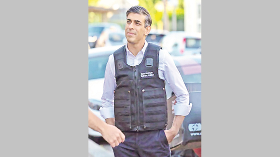 ৪৩ বছর বয়সী প্রধানমন্ত্রী ঋষি অংশ নেন উত্তর লন্ডনের ব্রেন্টের এক অভিযানে। এ সময় তার পরনে ছিল বুলেটপ্রুফ ভেস্ট। পকেটে হাত দিয়ে দাঁড়িয়ে হাসিমুখে তিনি অফিসারদের কাজ দেখছিলেন। নির্বাচন সামনে রেখে অবৈধ অভিবাসন বন্ধের বিষয়টি সরকারের অগ্রাধিকারের তালিকায় রেখেছেন কনজারভেটিভ পার্টির এ নেতা।