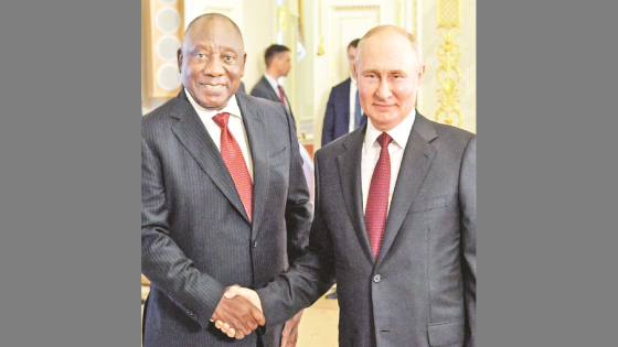 যুদ্ধ বন্ধের আহ্বান রামাফোসার : দক্ষিণ অফ্রিকার প্রেসিডেন্ট সিরিল রামাফোসাসহ আফ্রিকার সাত দেশের প্রতিনিধিরা ইউক্রেন যুদ্ধ বন্ধের উদ্যোগ নিয়েছেন। এরই অংশ হিসেবে তারা দুই দেশ সফর করছেন। প্রথমে ইউক্রেনে গিয়ে তারা দেশটির প্রেসিডেন্ট ভলোদিমির জেলেনস্কির সঙ্গে বৈঠক করেন। এরপর চলে যান রাশিয়ায়। সেখানে তারা প্রেসিডেন্ট পুতিনের সঙ্গে শনিবার বৈঠক করেন। বৈঠকে রামাফোসা পুতিনকে বলেন, এ যুদ্ধ অবশ্যই দ্রুত বন্ধ করতে হবে। আলোচনার মাধ্যমে এবং কূটনৈতিক উপায়ে যুদ্ধ বন্ধ করতে হবে। তিনি আরও বলেন, আফ্রিকার সাত নেতার সমন্বয়ে তার প্রতিনিধিদল খুব স্পষ্ট বার্তা নিয়ে এসেছে। আর সেটা হলো, এ যুদ্ধ শেষ করতে হবে। রামাফোসা আনুষ্ঠানিক বৈঠকের আগে পুতিনকে আরও বলেন, আফ্রিকা মহাদেশ এবং বিশ্বের অনেক দেশেই এ যুদ্ধ নেতিবাচক প্রভাব ফেলছে।
