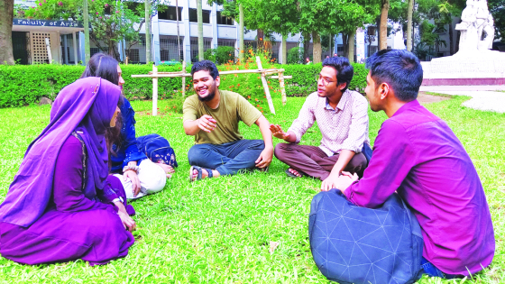 আবার ঈদের ছুটি। লাল বাসগুলো ছেড়ে যেতে শুরু করেছে। কোলাহলপূর্ণ ক্যাম্পাসে সুনসান নীরবতা। শিক্ষার্থীদের কেউ পোঁটলা গুছিয়ে দৌড় দিয়েছে বাস ধরতে। কেউ ঢিমেতালে নিচ্ছে টিকিট কাটার প্রস্তুতি। তবে শেষ দিনেও আড্ডার সুযোগ হাতছাড়া করেনি কয়েকজন। ঢাকা বিশ্ববিদ্যালয়ের কলা অনুষদের সামনে তাদের সঙ্গে বসেছিলেন সিফাত রাব্বানী।