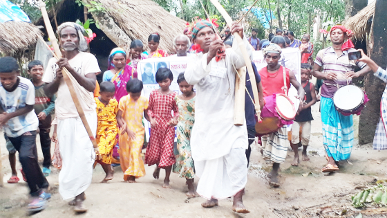 ধামসা মাদলের তালে নেচে গেয়ে ক্ষুদ্র নৃগোষ্ঠীর নারী-পুরুষ শিশুরা বর্ণাঢ্য শোভাযাত্রা বের করে গ্রামের বিভিন্ন রাস্তা প্রদক্ষিণ করে, বিপ্লবী সিধু-কানুর প্রতিকৃতিতে ফুল দিয়ে শ্রদ্ধা জানান। আলোচনা সভায় জগদীশ সরেনের সভাপতিত্বে বক্তব্য দেন বিরেন বেশরা, মাতি মুরমু, ডলি সরেন প্রমুখ।