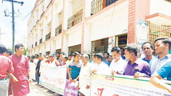 শরীয়তপুরের ভেদরগঞ্জ উপজেলার ছয়গাঁওয়ে মন্দির ভাঙচুরের প্রতিবাদে মানববন্ধন কর্মসূচি পালিত হয়েছে। গতকাল বৃহস্পতিবার উপজেলা পরিষদের সামনে এ কর্মসূচি পালন করা হয়। এর আয়োজন করে জাতীয় হিন্দু মহাজোট, বাংলাদেশ হিন্দু বৌদ্ধ খ্রিষ্টান ঐক্য পরিষদ, বাংলাদেশ পূজা উদযাপন পরিষদ, ছাত্র ঐক্য পরিষদসহ অন্যান্য হিন্দু সংগঠন ও স্থানীয়রা। মানববন্ধনে মন্দিরে হামলা চালিয়ে প্রতিমা ভাঙচুরকারীদের গ্রেপ্তারের দাবি জানানো হয়। মানববন্ধনে উপস্থিত ছিলেন শরীয়তপুর জেলা আওয়ামী লীগের সাধারণ সম্পাদক বাবু অনল কুমার দে, বাংলাদেশ হিন্দু বৌদ্ধ খ্রিষ্টান ঐক্য পরিষদের জেলা শাখার সভাপতি শংকর প্রসাদ চৌধুরীসহ বিভিন্ন উপজেলার হিন্দু সংগঠনের নেতাকর্মীরা। জানা যায়, সোমবার সন্ধ্যার দিকে শরীয়তপুর জেলা আওয়ামী লীগের সাধারণ সম্পাদক বাবু অনল কুমার দের বাড়ির পারিবারিক মন্দিরে ঢুকে প্রতিমা ভাঙচুর করে দুর্বৃত্তরা। এ ছাড়া মন্দিরের জিনিসপত্র ভেঙে ফেলে ও পূজা-অর্চনার কাজে ব্যবহৃত কিছু কাঁসা-পিতলের তৈজসপত্র নিয়ে যায়। সন্ধ্যায় ওই বাড়ির এক নারী পূজা দিতে গেলে এমন অবস্থা দেখতে পান। খবর পেয়ে ভেদরগঞ্জ উপজেলা নির্বাহী কর্মকর্তা আব্দুল্লাহ আল মামুন, জেলা সিনিয়র সহকারী পুলিশ সুপার, ভেদরগঞ্জ থানার ওসি ওবায়দুল হক উপস্থিত হন।