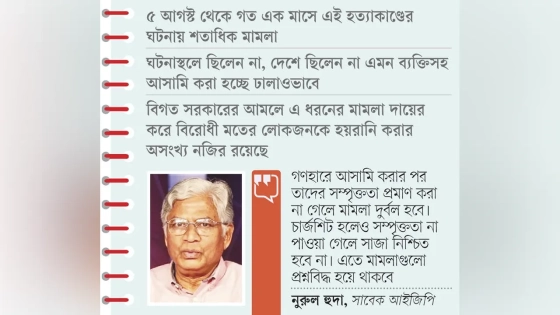 এসব মামলার বিষয়ে জানতে চাইলে পুলিশের সাবেক মহাপরিদর্শক (আইজিপি) নুরুল হুদা কালবেলাকে বলেন, গণহারে আসামি করার পর যদি তাদের সম্পৃক্ততা প্রমাণ করা না যায়, তাহলে মামলাগুলো দুর্বল হবে। চার্জশিট হলেও সম্পৃক্ততা না পাওয়া গেলে সাজা নিশ্চিত হবে না। এতে মামলাগুলো প্রশ্নবিদ্ধ হয়ে থাকবে।