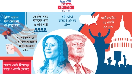 ব্যালট পেপারে ঠাঁই পেল বাংলা : এদিকে নির্বাচনে নিউইয়র্ক অঙ্গরাজ্যের ব্যালট পেপারে ইংরেজির পাশাপাশি যে চারটি বিদেশি ভাষা ঠাঁই পেয়েছে, সেসবের একটির নাম বাংলা। যুক্তরাষ্ট্রের নির্বাচন পরিচালনাকারী সংস্থা বোর্ড অব ইলেকশন্সের নিউইয়র্ক অঙ্গরাজ্য শাখার নির্বাহী পরিচালক মাইকেল জে রায়ান সোমবার এক প্রেস ব্রিফিংয়ে এ তথ্য জানান। নিউইয়র্কের প্রধান শহর নিউইয়র্ক সিটিতে আয়োজিত সেই ব্রিফিংয়ে রায়ান বলেন, ‘অভিবাসী ভোটারদের সুবিধার জন্য ব্যালট পেপারে ইংরেজির পাশাপাশি ৪টি ভাষা অন্তর্ভুক্তির সিদ্ধান্ত নিয়েছে বোর্ড অব ইলেকশন্স নিউইয়র্ক শাখা। এই ভাষাগুলো হলো চীনা, স্প্যানিশ, কোরিয়ান এবং বাংলা।’ নিউইয়র্ক সিটির বিখ্যাত টাইমস স্কয়ার এলাকার একটি দোকানে কাজ করেন শুভাশীষ, যিনি ভারতের পশ্চিমবঙ্গ থেকে নিউইয়র্কে গিয়ে স্থায়ী হয়েছেন। এনডিটিভি ওয়ার্ল্ডকে শুভাশীষ বলেন, ‘আমি নিজে ইংরেজি ভাষায় দক্ষ, তবে এখানে আমাদের কমিউনিটিতে এমন অনেক মানুষ আছেন, যারা বাংলা ভাষার ব্যালট পেপার দেখলে স্বস্তি বোধ করবেন। ভোটকেন্দ্রে এটি তাদের জন্য সহায়ক হবে। আমি নিশ্চিত যে আমার বাবা এই ব্যাপারটি পছন্দ করবেন।’ প্রসঙ্গত, যুক্তরাষ্ট্রের নিউইয়র্ক রাজ্যটি অধিবাসী অধ্যুষিত। দেশটির মোট অভিবাসীদের একটি বড় অংশ থাকেন নিউইয়র্ক সিটিসহ এই রাজ্যের বিভিন্ন শহরে। সরকারি পরিসংখ্যান বলছে, গোটা নিউইয়র্কে ২ শতাধিক ভাষায় কথা বলেন লোকজন। এসবের মধ্যে হিন্দি, পাঞ্জাবি, গুজরাটি, তামিলসহ বিভিন্ন ভারতীয় ভাষাও রয়েছে। কিন্তু সেসবের মধ্যে ভারতীয় ভাষা হিসেবে বেছে নেওয়া হয়েছে একমাত্র বাংলাকে। ব্রিফিংয়ে এ সংক্রান্ত এক প্রশ্নের উত্তরে মাইকেল জে রায়ান বলেন, ‘আমি বুঝতে পারছি যে (ব্যালট পেপারের জন্য) অন্যান্য ভারতীয় ভাষাকে বাদ দিয়ে শুধু বাংলাকে বেছে নেওয়ায় অন্য ভাষাভাষী ভারতীয়রা হয়তো মনঃক্ষুণ্ন হয়েছেন, কিন্তু এটা ছাড়া আমাদের সামনে আর কোনো বিকল্প ছিল না।’