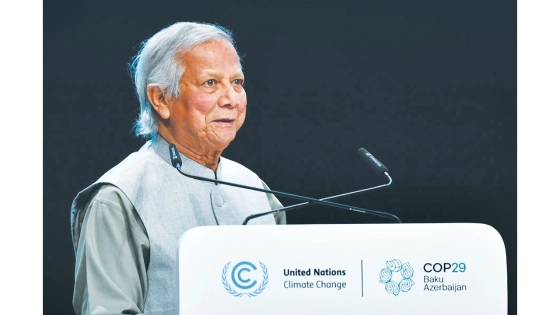 গতকাল বুধবার আজারবাইজানের রাজধানী বাকুতে কপ২৯-এর ওয়ার্ল্ড লিডারস ক্লাইমেট অ্যাকশন সামিটের উদ্বোধন অধিবেশনে বক্তব্যে তিনি এ কথা বলেন। এ সময় ড. ইউনূস তার থ্রি জিরো তত্ত্বের ব্যাখ্যা করেন।