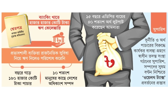 দেশের অর্থনীতির সার্বিক পরিস্থিতি খতিয়ে দেখতে অন্তর্বর্তী সরকারের গঠিত শ্বেতপত্র প্রণয়ন কমিটির চূড়ান্ত প্রতিবেদনে এমন চিত্র উঠে এসেছে। এ ছাড়া গত ১৫ বছরে রাজনৈতিক প্রভাব খাটিয়ে অবৈধ সম্পদ অর্জন, বিশেষ করে ব্যাংকিং, অবকাঠামো এবং সরকারি খাতের দুর্নীতির বিস্তর চিত্র তুলে ধরা হয়েছে।