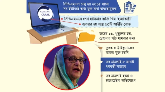 সিডিএমএসের তথ্য বলছে, বিগত পাঁচ মাসে হাসিনা পরিবারের সদস্যদের নামে প্রায় একশটি মামলা নথিভুক্ত হয়েছে। এসব মামলায় আন্দোলনের সময় নিরীহ ছাত্র-জনতার ওপর নির্বিচারে গুলি চালানোর হুকুমদাতা, অর্থদাতা এবং পরিকল্পনাকারী হিসেবে আসামি করা হয়েছে শেখ হাসিনা, তার বোন শেখ রেহানা, ছেলে সজীব ওয়াজেদ জয় এবং মেয়ে সায়মা ওয়াজেদ পুতুলকে। সর্বশেষ গত ২৫ জানুয়ারি ডিএমপির ভাটারা থানায় শেখ হাসিনার বিরুদ্ধে দায়ের হওয়া একটি মামলার তথ্য সিডিএমএসে যুক্ত করা হয়েছে।