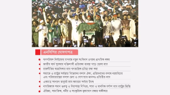 জুলাই অভ্যুত্থানে উদ্দীপ্ত তরুণদের নেতৃত্বে সব রাজনৈতিক দলকে সঙ্গে নিয়ে আগামীর বাংলাদেশ পুনর্গঠন করার প্রতিশ্রুতি দেশবাসীর কাছে রেখেছেন দলটির সিনিয়র যুগ্ম মুখ্য সমন্বয়ক আব্দুল হান্নান মাসউদ। তিনি বলেন, আর কোনো নির্বাচনের আগে দলে দলে সংঘাত হয়ে প্রাণহানির ঘটনা ঘটতে তরুণরা দেবে না। আগামীর বাংলাদেশে সবাই দল-মত নির্বিশেষে বসবাস করবে। তরুণদের নেতৃত্বে সব রাজনৈতিক দলকে সঙ্গে নিয়ে আগামীর বাংলাদেশ পুনর্গঠন করা হবে, এটা দেশবাসীর কাছে আমাদের প্রতিশ্রুতি।