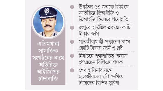 অনুসন্ধান করতে গিয়ে এ পুলিশ কর্মকর্তা সম্পর্কে বেরিয়ে এসেছে চাঞ্চল্যকর অনেক তথ্য। সাবেক এই অতিরিক্ত আইজিপি তালা উপজেলায় নিজ গ্রামে জমি কিনে বাবার নামে তৈরি করেছেন একটি এতিমখানা। সেই এতিমখানায় অনুদান নেওয়ার নামে বিভিন্ন জনের কাছ থেকে চাঁদা নিতেন। শ্বশুরবাড়ির এলাকা রংপুরে ‘মানবতার বন্ধন’ নামে একটি সামাজিক সংগঠন প্রতিষ্ঠা করেন। অভিযোগ রয়েছে, ব্যবসায়ী, মাদক কারবারিসহ বিভিন্ন ব্যক্তির কাছ থেকে লাখ লাখ টাকা অনুদান নেন ওই সংগঠনের নামে। এসব ছাড়াও ঘুষ এবং বিভিন্ন রকম আর্থিক কেলেঙ্কারির মাধ্যমে গড়ে তুলেছেন স্থাবর-অস্থাবর সম্পদের পাহাড়। এর সবই করেছেন, পতিত আওয়ামী লীগ সরকারের সময়ে ‘ছাত্রলীগের সাবেক নেতা’ পরিচয় ব্যবহার করে। এ ছাড়া তার বিরুদ্ধে সাধারণ মানুষকে মামলা দিয়ে হয়রানি, বদলি বাণিজ্য, জাতীয় এবং স্থানীয় নির্বাচনে বিভিন্ন প্রার্থীর পক্ষে ভোট জালিয়াতি করে পাস করিয়ে দেওয়াসহ নানা অভিযোগ মিলেছে।