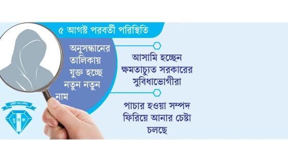 এ প্রসঙ্গে দুদক কমিশনার (তদন্ত) মিঞা মুহাম্মদ আলি আকবার আজিজী কালবেলাকে বলেন, দুদক সাধারণত প্রাপ্ত অভিযোগ এবং নিজস্ব গোয়েন্দা তথ্যের ভিত্তিতে অনুসন্ধান ও পরে মামলার পর তদন্ত করে। ৫ আগস্টের পর আমাদের কাছে যেসব অভিযোগ সরকারি-বেসরকারি সংস্থা ও বিভিন্ন ব্যক্তিপর্যায় থেকে এসেছে সেগুলো আমরা আমলে নিয়ে অনুসন্ধান করছি। বেশ কিছু মামলাও হয়েছে। ৫ আগস্ট-পরবর্তী যাদের বিরুদ্ধে মামলা ও তদন্ত হচ্ছে তাদের বেশিরভাগ রাজনৈতিক দলের নেতা এবং সাবেক মন্ত্রী-এমপি। অতিউৎসাহী কতিপয় দুর্নীতিবাজ কর্মকর্তা-কর্মচারীর ব্যাপারে অনুসন্ধান ও তদন্ত চলছে। উচ্চাভিলাষী অপেশাদার কিছু আমলা ও সামরিক কর্মকর্তার নামও রয়েছে তালিকায়। এ ছাড়া যারা দুর্নীতির মাধ্যমে অর্জিত সম্পদ পাচার করেছে কমিশন সেগুলো দেশে ফিরিয়ে আনার জন্য সরকারের বিভিন্ন দপ্তরের সহযোগিতা নিয়ে কাজ করছে।