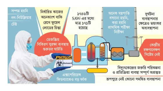 পরমাণু বিশেষজ্ঞরা বলছেন, এমন ভঙ্গুর অবস্থায় রূপপুরকে নির্ভরযোগ্যভাবে চালু করা বা Physical Start-up করা বিপজ্জনক হতে পারে। স্টেজ প্রোগ্রামে নির্ধারিত কাজের অনেকাংশ বাকি রেখে সরাসরি ফুয়েল লোডের চেষ্টা, Radiological পরিস্থিতি জটিল করবে এবং নিউক্লিয়ার অপারেশনে সরাসরি ঝুঁকি তৈরি করবে।