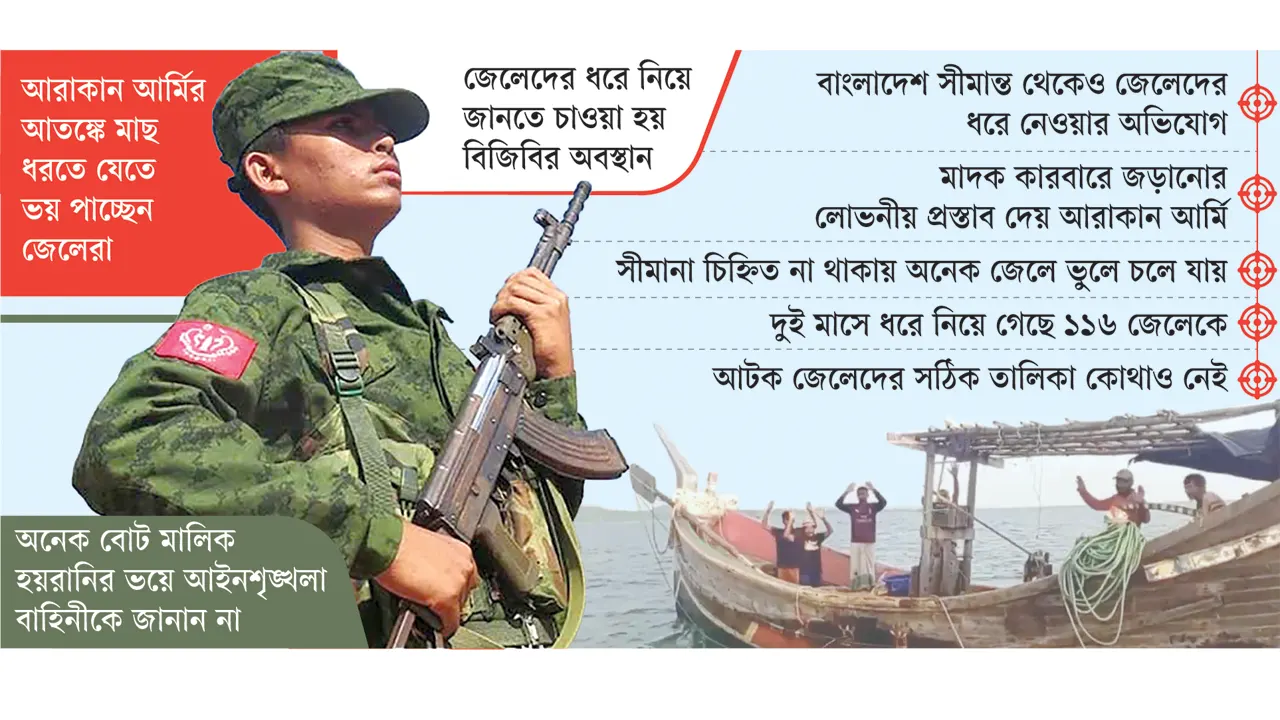 খোঁজ নিয়ে জানা যায়, টেকনাফ উপজেলার শাহপরীর দ্বীপ, সেন্টমার্টিন ও টেকনাফের মানুষের অন্যতম প্রধান পেশা সমুদ্রে মাছ শিকার। শত শত বছর ধরে এ পেশার মাধ্যমে জীবিকা নির্বাহ করছেন তারা। তবে সাম্প্রতিক সময়ে তাদের মধ্যে নতুন করে দেখা দিয়েছে আরাকান আর্মির আতঙ্ক। আরাকানে জান্তা সরকারের পতনের পর থেকেই আরাকান আর্মির উৎপাত বাড়তে শুরু করে। কার্যত আরাকানে কোনো স্বীকৃত সরকার না থাকায় আইনশৃঙ্খলা রক্ষাকারী বাহিনীর পক্ষ থেকেও বৈধভাবে যোগাযোগ করা সম্ভব হচ্ছে না। যে কারণে আটক জেলেদের উদ্ধারে কার্যকর ব্যবস্থা নিতে পারছে না প্রশাসন। অনেক ক্ষেত্রে আটককৃতদের উদ্ধারে আরাকান আর্মির মর্জির ওপরই ভরসা করতে হচ্ছে। তবে আটক বেশ কয়েকজন জেলে বিভিন্ন সময়ে আরাকান আর্মির হাত থেকে পালিয়েও এসেছেন।