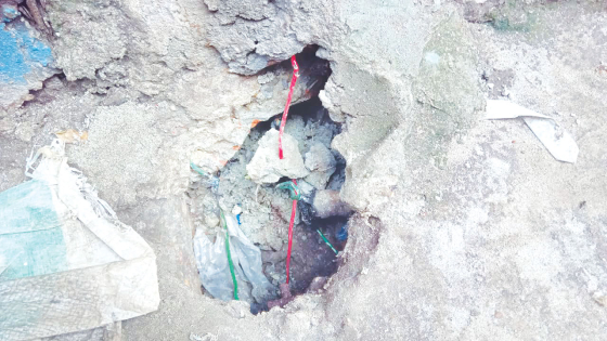 দেখা যায়, মিরপুর হাজীপাড়া নামে এই এলাকার বৈদ্যুতিক পিলার থেকে অবৈধভাবে লাল এবং সবুজ তার দিয়ে লাইনগুলো রাস্তার নিচ দিয়ে চলে গেছে বস্তিতে। বস্তির মুখেই দুই রাস্তার মাঝখানে একটি ড্রেন। বৃষ্টি হলে বা পানি জমলে এই ড্রেন দিয়ে পানি চলে যেত বস্তির পেছনের ঝিলে। কিন্তু বেশ কিছু স্থাপনা দিয়ে জায়গা দখল করে ড্রেনের মুখ বন্ধ করে দেওয়া হয়েছে।
