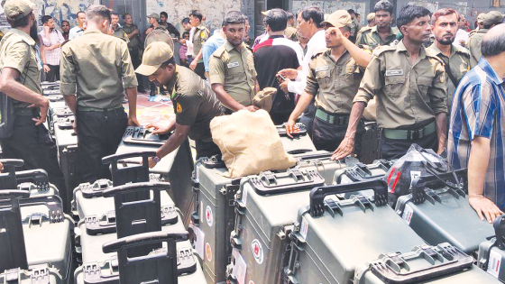 গতকাল মঙ্গলবার সকাল থেকে সিলেট নগরীর উপশহরে আবুল মাল আব্দুল মুহিত ক্রীড়া কমপ্লেক্স থেকে কেন্দ্রগুলোর দায়িত্বপ্রাপ্ত কর্মকর্তাদের কাছে নির্বাচনী উপকরণ বুঝিয়ে দেওয়া হয়। আজ সকাল ৮টা থেকে ভোট গ্রহণ শুরু করবেন প্রিসাইডিং অফিসাররা। অন্যদিকে, রাজশাহী নিউ গভর্নমেন্ট ডিগ্রি কলেজ থেকে রিটার্নিং অফিসার দেলোয়ার হোসেন আইনশৃঙ্খলা রক্ষাকারী বাহিনীর উপস্থিতিতে কেন্দ্রগুলোতে ভোটের সরঞ্জাম পাঠানোর কার্যক্রম শুরু করেন। দুই সিটির ভোটকেন্দ্রের দায়িত্বে নিয়োজিত প্রিসাইডিং অফিসাররা নির্বাচনী সরঞ্জাম বুঝে নেন। এরপর কড়া নিরাপত্তার মধ্য দিয়ে সেগুলো কেন্দ্রে কেন্দ্রে পৌঁছানো হয়।