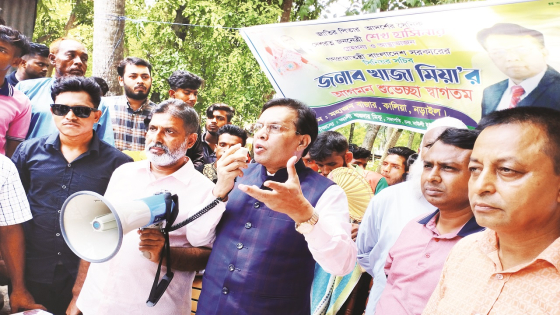 এরপর খাজা মিয়া স্থানীয় সংসদ সদস্যের বিরুদ্ধে অভিযোগ তুলে বলেন, ‘প্রতিটি স্কুল, কলেজ, মাদ্রাসা থেকে অবৈধ নিয়োগ বাণিজ্যের মাধ্যমে কতিপয় ব্যক্তি, তার নেতৃত্বে কি না সেটা আমি বলব না, বিপুল অর্থের মালিক হয়েছে। নড়াইল-১ আসনের ২০টি ইউনিয়নের প্রতিটি স্কুলে, প্রতিটি বিদ্যালয়ে অযোগ্য লোকদের নিয়োগ করে, স্থানীয় লোক বাদ দিয়ে নিজের পছন্দমতো ম্যানেজিং কমিটির সভাপতি গঠন করে তাদের মাধ্যমে এই অবৈধ অর্থের মালিক হয়ে আজকে অনেকে খুলনা ও ঢাকায় বাড়ি করেছেন। এই নড়াইলের মানুষের ভাগ্যের পরিবর্তন না করে তিনি (এমপি) নিজের ভাগ্য পরিবর্তন করেছেন।’