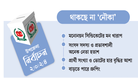 দ্বাদশ জাতীয় সংসদ নির্বাচনের রেশ কাটতে না কাটতেই দেশজুড়ে বইছে উপজেলা নির্বাচনের হাওয়া। স্থানীয় সরকারের এই নির্বাচনে এবার দলীয় মনোনয়ন না দেওয়ার ঘোষণা দিয়েছে আওয়ামী লীগ। ফলে ভোটের ময়দানে থাকছে না দলীয় প্রতীক ‘নৌকা’। ক্ষমতাসীন দলের এমন সিদ্ধান্তের পর কনকনে শীতেও তৃণমূলে ভোটের উত্তাপ ছড়াতে শুরু করেছে। দলীয় নেতাকর্মীদের মধ্যে একই সঙ্গে তৈরি হয়েছে আশা ও আশঙ্কা। নির্বাচন উন্মুক্ত করে দেওয়ায় তৃণমূলের কিছু প্রভাবশালী নেতা, সংসদ সদস্য ও কোনো কোনো কেন্দ্রীয় নেতার মনোনয়ন বাণিজ্যের পথ বন্ধ হচ্ছে। সেইসঙ্গে কমছে স্বজনপ্রীতি ও নিজ বলয়ের অযোগ্যদের জনপ্রতিনিধি নির্বাচিত করার সুযোগ। এসব কারণে নৌকার প্রার্থী না দেওয়ার ঘোষণায় হতাশ হয়েছেন অনেক সংসদ সদস্য ও প্রভাবশালী নেতা। বিভিন্ন পর্যায়ের মনোনয়ন সিন্ডিকেটেরও মন খারাপ। যদিও নেতাকর্মীদের অনেকেই এই সিদ্ধান্তকে ইতিবাচক হিসেবে দেখছেন। তবে দলীয় নেতাদের প্রার্থী হওয়ার অবাধ সুযোগ তৃণমূলে দ্বন্দ্ব-সংঘাত তীব্র করে তুলবে বলে কারও কারও আশঙ্কা।