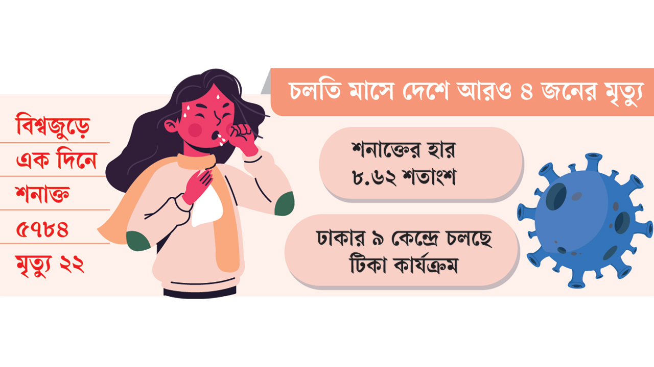 বিশ্বে এক দিনে শনাক্ত ৫৭৮৪, মৃত্যু ২২: