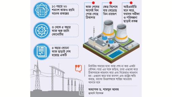 এ বিষয়ে জানতে চাইলে জ্বালানি বিশেষজ্ঞ অধ্যাপক ড. শামসুল আলম কালবেলাকে বলেন, ‘নির্ধারিত সময়ের মধ্যে কাজ শেষ না করা একটা কৌশল। এর ফলে প্রকল্পের ব্যয় তিন-চারগুণ বেড়ে যাচ্ছে। বিদ্যুৎ বিভাগের যেসব কর্মকর্তা এর সঙ্গে জড়িত, এর মাধ্যমে তারা নিজেরা লাভবান হয়, ঠিকাদারদের লাভবান করে। যারা এভাবে রাষ্ট্র ও জনগণের ক্ষতি করছে তাদের শাস্তির আওতায় আনতে হবে।’