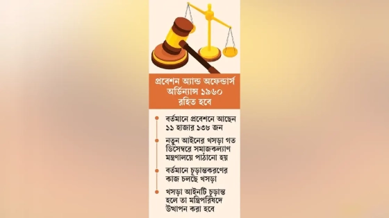 জানতে চাইলে সমাজসেবা অধিদপ্তরের মহাপরিচালক ড. আবু সালেহ মোস্তফা কামাল বলেন, প্রবেশন আইন নিয়ে অধিদপ্তরের অংশের কাজ শেষে সেটা মন্ত্রণালয়ে পাঠানো হয়েছে। এখন এটা নিয়ে মন্ত্রণালয় কাজ করছে। সমাজকল্যাণ মন্ত্রণালয়ের আইন কোষ ও বিধি শাখার একজন সহকারী সচিব কালবেলাকে জানান, আইনটির খসড়া চূড়ান্তকরণের কাজ চলছে। খসড়া চূড়ান্ত হতে সময় লাগবে।