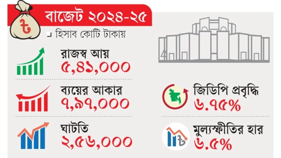 অর্থাৎ সংকটকালে সংকট মোচনে তিনি ব্যয়কে যতটা সম্ভব সংকোচনমুখী রাখতে চান তার বাজেট পরিকল্পনায়। একই সঙ্গে ‘সুখী, সমৃদ্ধ, উন্নত ও স্মার্ট বাংলাদেশ বিনির্মাণের অঙ্গীকার’ও রাখবেন অর্থমন্ত্রী। এজন্য আগামীকাল বৃহস্পতিবার জাতীয় সংসদে দাঁড়িয়ে তিনি মূল্যস্ফীতি নিয়ন্ত্রণকে অগ্রাধিকার দিয়ে আগামী ২০২৪-২৫ অর্থবছরের জন্য ৭ লাখ ৯৭ হাজার কোটি টাকার ব্যয় পরিকল্পনার বাজেট প্রস্তাব করবেন। যেখানে এই বাজেট বাস্তবায়নের মূল চ্যালেঞ্জ হিসেবে বিবেচনা করা হচ্ছে উচ্চ মূল্যস্ফীতির লাগাম টানা, রিজার্ভ উন্নয়ন, ডলারের দামে অস্থিতিশীলতা, কাঙ্ক্ষিত রাজস্ব সংগ্রহের লক্ষ্যমাত্রা অর্জন, সুদ পরিশোধে বাড়তি খরচের জোগান এবং বিদ্যুৎ, গ্যাস ও সারে বকেয়া ভর্তুকি ব্যয়ের পাশাপাশি স্বল্প আয়ের মানুষের ক্রয়ক্ষমতা ধরে রাখতে সামাজিক নিরাপত্তা বলয়ের আওতা বৃদ্ধিজনিত ব্যয় সামলানোকে।