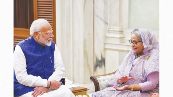 প্রধানমন্ত্রী শেখ হাসিনা ও ভারতের প্রধানমন্ত্রী নরেন্দ্র মোদি বন্ধুপ্রতিম দুই দেশের মধ্যে বিদ্যমান দ্বিপক্ষীয় সম্পর্ক আগামীতে আরও দৃঢ় করার ইচ্ছা প্রকাশ করেছেন। মোদি সরকারের মন্ত্রিসভার শপথ অনুষ্ঠানের পর দুই প্রধানমন্ত্রীর মধ্যে একান্ত বৈঠকে এ প্রত্যাশা ব্যক্ত করা হয়। সেখানে নরেন্দ্র মোদিকে সুবিধাজনক সময়ে বাংলাদেশ সফরের আমন্ত্রণও জানান শেখ হাসিনা।