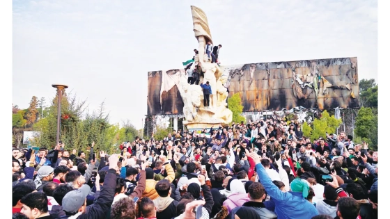গতকাল বাশার আল-আসাদের পলায়নের খবরে দেশজুড়ে, বিশেষ করে দামেস্কে মানুষের ব্যাপক আনন্দ-উল্লাসে মেতে উঠতে দেখা যায়। এদিন বিদ্রোহী যোদ্ধারা প্রায় বিনা বাধায় রাজধানী দামেস্কে ঢুকে পড়ে। এরপরই দেশটির রাজধানীতে রাস্তায় নেমে আসেন হাজার হাজার মানুষ। তারা উল্লাস প্রকাশের পাশাপাশি ‘স্বাধীনতা’ নিয়ে বিভিন্ন স্লোগান দেন। হাজার হাজার মানুষ গাড়িতে; হেঁটে দামেস্কের প্রাণকেন্দ্রে জড়ো হন। তাদের ‘স্বাধীনতা’ ‘স্বাধীনতা’ স্লোগানে মুখরিত হয় চারপাশ। বেশ কিছু ভিডিওতে দামেস্কের উমাইয়াদ স্কয়ারে মানুষকে পরিত্যক্ত সামরিক ট্যাঙ্কের ওপর দাঁড়িয়ে আনন্দ উদযাপন করতে আর গান গাইতে দেখা যায়। অন্যদিকে দামেস্কের বিমানবন্দরে দেখা যায় ভিন্ন চিত্র। সংগত কারনেই সেখানে ব্যাপক বিশৃঙ্খলার সৃষ্টি হয়। বলার অপেক্ষা রাখে না যে, সিরিয়ার দীর্ঘ সময়ের গৃহযুদ্ধে এ এক ঐতিহাসিক মুহূর্ত। বিশেষ করে মধ্যপ্রাচ্যের এই দেশটির নিয়ন্ত্রণের জন্য বিরোধীদের যারা বছরের পর বছর ধরে সংগ্রামে লিপ্ত ছিলেন, তাদের কাছে তো বটেই; সাধারণ সিরীয়দের জন্যও একই।