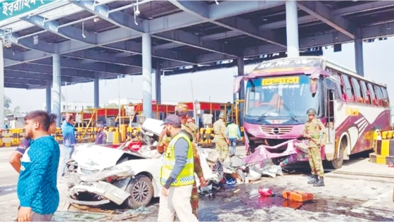 ঢাকার কেরানীগঞ্জের আব্দুল্লাহপুর টোল প্লাজায় গতকাল শুক্রবার বাইকের পেছনে ছিল এক ভদ্রলোকের স্ত্রী আর সাত বছরের সন্তান। টাকা দেওয়ার সময় সন্তান বাবার কাছে আবদার করে, ‘বাবা আমি টাকা দেব’। বাবা সন্তানের হাতে টাকা দেন! ঠিক তখনই পেছন থেকে ছুটে আসা দ্রুতগতির বাস সবকিছু স্তব্ধ করে দেয়। কাকতালীয়ভাবে বাবা বেঁচে গেলেও তার চোখের সামনে মারা যায় স্ত্রী আর সন্তান। ভদ্রলোক ঘটনার বিবরণ দিতে গিয়ে বললেন, ‘আমি তাকিয়ে দেখি আমার সন্তানের মাথার ওপর দিয়ে বাসের চাকা চলে গেছে। আমার সন্তানের চোখ বেরিয়ে গেছে। আর আমার বিবিকে চাকার সঙ্গে বিঁধে টেনে নিয়ে গেছে।’ সড়কে এভাবে মৃত্যুর মিছিল কবে বন্ধ হবে? কবে আমরা সচেতন হতে পারব—তার কোনো উত্তর আছে?