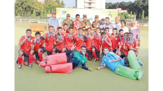 ‘তারুণ্যের উৎসব’ উদযাপনের অংশ হিসেবে বিকেএসপি আয়োজিত ‘বিকেএসপি কাপ হকি (অ-১৯) প্রতিযোগিতায় বিকেএসপি লাল দল চ্যাম্পিয়ন হয়েছে। আজ বিকেলে অনুষ্ঠিত টুর্নামেন্টের ফাইনাল খেলায় বিকেএসপি লাল টাইব্রেকারে ৩-০ গোলের ব্যবধানে বিকেএসপি সবুজ দলকে পরাজিত করে। নির্ধারিত সময়ে বিকেএসপির দুই দলের মধ্যকার খেলা ২-২ গোলে অমীমাংসিত ছিল। বিকেএসপি সবুজ দলের তাওসান হোসেন সারার ১৩ গোল করে সর্বোচ্চ গোলদাতা এবং ফাইনালে শুটআউটে ৩ গোল ঠেকিয়ে বিকেএসপি লাল দলের রায়হানুল ইসলাম সেরা খেলোয়াড়ের পুরস্কার লাভ করেন। টুর্নামেন্টের প্রথম সেমিতে বিকেএসপি লাল ময়মনসিংহকে এবং দ্বিতীয় সেমিতে বিকেএসপি সবুজ দিনাজপুরকে পরাজিত করে ফাইনালে উঠে আসে। তৃতীয়স্থান নির্ধারণী ম্যাচে ময়মনসিংহ দল দিনাজপুরকে পরাজিত করে। মহাপরিচালক ব্রিগেডিয়ার জেনারেল মো. মুনীরুল ইসলাম ফাইনাল খেলাটি উপভোগ করেন এবং সমাপনী অনুষ্ঠানে পুরস্কার বিতরণ করেন। উল্লেখ্য, গত ২৯ অক্টোবর টুর্নামেন্ট শুরু হয়। বিকেএসপির ২ দলসহ ঢাকা, রাজশাহী, ময়মনসিংহ ও দিনাজপুর হকি দল ৬ দিনব্যাপী টুর্নামেন্টে অংশগ্রহণ করে।