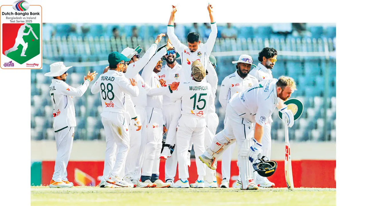 দ্বিতীয় ইনিংসের ষষ্ঠ ওভারেই আয়ারল্যান্ডের ওপেনার অ্যান্ডি বালবার্নিকে এলবিডব্লিউর ফাঁদে ফেললেন তাইজুল ইসলাম। জোরালো আবেদনে আম্পায়ার আঙুল তুলতেই ম্যাচ জেতার মতো বাঁধভাঙা উদযাপনে বাংলাদেশ ফিল্ডাররা। তাইজুলকে কোলে চড়িয়ে নিলেন মুশফিকুর রহিম; দারুণ অর্জনকে দারুণভাবেই উদযাপন করলেন বাংলাদেশের খেলোয়াড়রা। সাকিব আল হাসানকে ছাড়িয়ে টেস্ট ক্রিকেটে বাংলাদেশের হয়ে সর্বোচ্চ উইকেট শিকারি এখন বাঁহাতি এই স্পিনার।