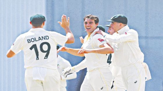 অস্ট্রেলিয়ার প্রথম ইনিংস ২৬৩ রানে শেষ হওয়ার পর একাই লড়াই করলেন অধিনায়ক বেন স্টোকস। ১০৮ বলে ৮০ রান করেন এ অলরাউন্ডার। জ্যাক ক্রিউলি ৩৩ ও মার্ক উড ২৪ রান করেন। অধিনায়ক প্যাট কামিন্স ইংলিশদের ধসিয়ে দেওয়ার মিছিলে নেতৃত্ব দিয়েছেন। ৯১ রানে ৬ উইকেট নিয়েছেন এ পেসার। মিশেল স্টার্ক ২ উইকেট এবং মিশের মার্শ ও টড মার্ফি ১টি করে উইকেট নিয়েছেন। অস্ট্রেলিয়ার দ্বিতীয় ইনিংসের তৃতীয় ওভারেই ধাক্কা দিয়েছেন স্টুয়ার্ট ব্রড। ক্রাউলির হাতে ওয়ার্নারকে ক্যাচ দিতে বাধ্য করেন। শুরুর ধাক্কার পর অস্বস্তি নিয়ে ব্যাট করছিলেন উসমান খাজা ও মার্নাস লাবুশানে।