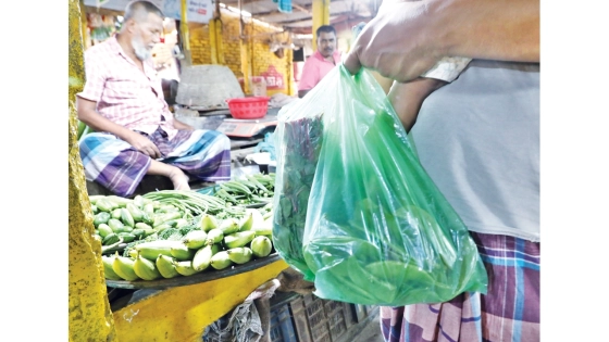 সুপারশপে পলিথিন নিষিদ্ধের পর গত ১ নভেম্বর থেকে রাজধানীসহ সারা দেশের কাঁচাবাজারেও পলিথিন ও পলিপ্রপিলিনের ব্যাগ নিষিদ্ধ করে অন্তর্বর্তী সরকারের পরিবেশ, বন ও জলবায়ু মন্ত্রণালয়। কিন্তু সাত দিন পেরোলেও তা কার্যকর হয়নি। বাজারে এখনো অবাধে ব্যবহার হচ্ছে নিষিদ্ধ এ পণ্যটি। শুক্রবার সরেজমিন রাজধানীর ঝিগাতলা কাঁচাবাজার, পলাশী, নিউমার্কেট, আজিমপুরসহ পাড়ামহল্লা ঘুরে দেখা গেছে, বাজারে অহরহ ব্যবহার হচ্ছে পলিথিন ব্যাগ। মুদিদোকান, সবজি বিক্রেতা, মাছ-মাংসের বাজার, খাবারের হোটেলসহ সব স্থানেই ব্যবহার হচ্ছে পলিথিন। বাজারের কোথাও ক্রেতা-বিক্রেতার হাতে দেখা যায়নি বিকল্প পাটের ব্যাগ কিংবা পরিবেশবান্ধব ব্যাগ।