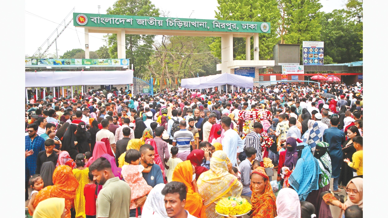 জাতীয় চিড়িয়াখানায় বেলা ১১টা থেকে দুপুর পর্যন্তই কয়েক হাজার দর্শনার্থীর সমাগম হয়। সেখানেই দেখা মিলল কুমিল্লা থেকে আসা রাবেয়া খাতুনের। তিন সন্তানকে নিয়ে এসেছেন ঢাকায় বেড়াতে। বললেন, ‘চিড়িয়াখানায় প্রথমবার এলাম। বাচ্চারা বাঘ, সিংহ, হাতি দেখে এত খুশি, ওদের আনন্দ দেখে মন ভরে গেছে।’