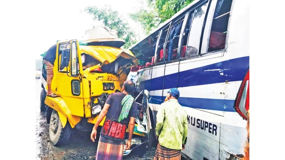 চুয়াডাঙ্গা সদর উপজেলার জাফরপুরে বিজিবি-৬ ব্যাটালিয়ন ক্যাম্পের সামনে সড়ক দুর্ঘটনায় তিনজন নিহত হয়েছেন। আহত হয়েছেন আরও চারজন। গতকাল সন্ধ্যা সাড়ে ৬টার দিকে একটি তেলবাহী ট্রাক ও ব্যাটারিচালিত ইজিবাইকের মুখোমুখি সংঘর্ষে এ দুর্ঘটনা ঘটে। নিহত ইজিবাইক চালকের নাম আরিফুর রহমান (৩৫)। অন্য দুজনের পরিচয় পাওয়া যায়নি। তবে তাদের মধ্যে একজন নারী ও একজন পুরুষ। এ ছাড়া আলমডাঙ্গা উপজেলার নওদাপাড়ায় বৃহস্পতিবার রাতে ট্রাকের ধাক্কায় মোটরসাইকেলের দুই আরোহী নিহত হয়েছেন। তারা হলেন পলাশ হোসেন (৪০) ও রিয়াদ হাসান (১২)।