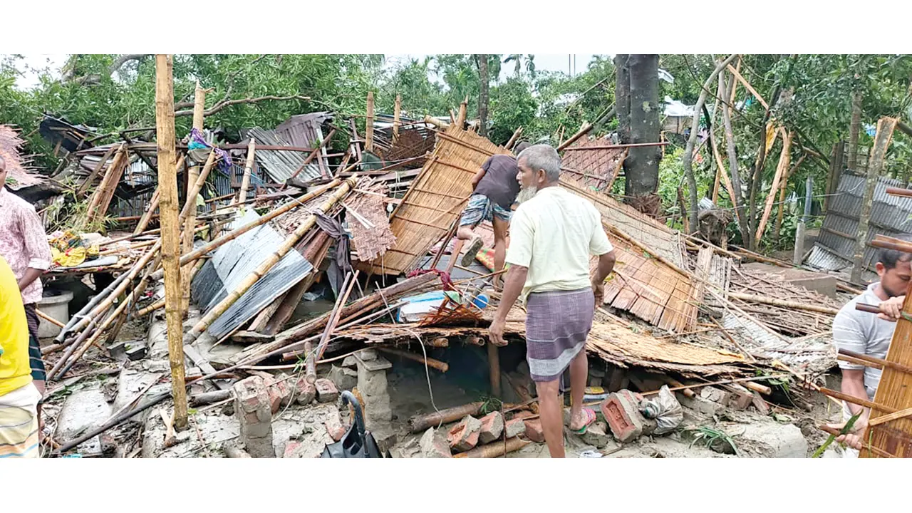 কিশোরগঞ্জ (নীলফামারী): ভারী বৃষ্টির ফাঁকে ঘূর্ণিঝড়ে নীলফামারী জেলার কিশোরগঞ্জ উপজেলার গাড়াগ্রাম ইউনিয়নের উত্তর খাড়া গ্রাম বানিয়াপাড়া থেকে শুরু করে ডিসির মোড় পর্যন্ত কয়েকশ বাড়িঘর ভেঙে গেছে। ৬০ জন মানুষ আহত হয়ে উপজেলা স্বাস্থ্য কমপ্লেক্সে প্রাথমিক চিকিৎসা নিয়ে বাড়িতে ফিরেছেন এবং দুজন গুরুতর অসুস্থ অবস্থায় রংপুর মেডিকেল কলেজ হাসপাতালে ভর্তি আছেন।