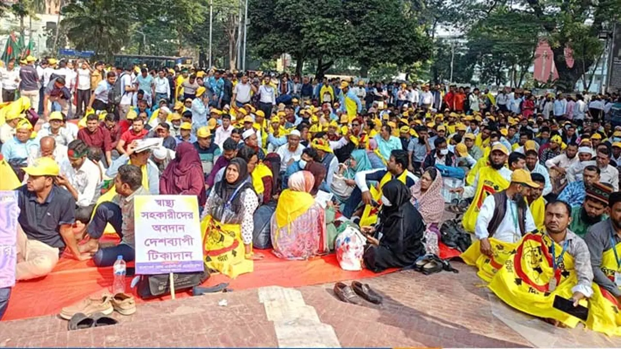 নিয়োগবিধি সংশোধন, বেতনবৈষম্য নিরসন ও টেকনিক্যাল পদমর্যাদাসহ ছয় দফা দাবির বাস্তবায়নের দাবিতে টানা তৃতীয় দিনের মতো কেন্দ্রীয় শহীদ মিনারে কর্মবিরতি ও অবস্থান কর্মসূচি পালন করেছে দেশের স্বাস্থ্য সহকারীরা। এই কর্মসূচির কারণে সারা দেশের ১ লাখ ২০ হাজার আউটরিচ ইপিআই টিকাদান কেন্দ্র বন্ধ রয়েছে। ফলে প্রতিদিন প্রায় দেড় লাখ মা ও শিশু নিয়মিত টিকাদান সেবা থেকে বঞ্চিত হচ্ছেন।