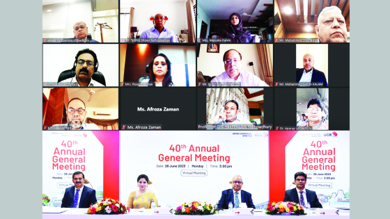 ব্যাংকের চেয়ারম্যান রুকমীলা জামানের সভাপতিত্বে ভার্চুয়ালি অনুষ্ঠিত বার্ষিক সাধারণ সভায় উপস্থিত ছিলেন ইউসিবি পরিচালনা পর্ষদের এক্সিকিউটিভ কমিটি চেয়ারম্যান আনিসুজ্জামান চৌধুরী; স্বতন্ত্র পরিচালক ও অডিট কমিটির চেয়ারম্যান তৌহিদ শিপার রফিকুজ্জামান; পরিচালক বজল আহমেদ; নুরুল ইসলাম চৌধুরী; রোক্সানা জামান; আফরোজা জামান; মুহাম্মদ শাহ আলম; কনক কান্তি সেন; মাসুমা পারভীন এবং স্বতন্ত্র পরিচালক ড. অপরূপ চৌধুরী ও প্রফেসর ড ইফতেখার উদ্দিন চৌধুরী। এ ছাড়া ইউসিবির ব্যবস্থাপনা পরিচালক ও সিইও আরিফ কাদরী ছাড়াও উপস্থিত ছিলেন প্রধান অর্থনৈতিক কর্মকর্তা ফারুক আহাম্মেদ। অনুষ্ঠান পরিচালনা করেন ব্যাংকের উপব্যবস্থাপনা পরিচালক ও কোম্পানি সচিব এটিএম তাহমিদুজ্জামান এফসিএস। এ সময় ইউসিবির চেয়ারম্যান বলেন, ইউসিবি ধারাবাহিকভাবে শেয়ারহোল্ডার, গ্রাহক এবং সর্বোপরি সামাজিক উন্নয়নের স্বার্থ কাজ করতে থাকবে। ইউসিবির ব্যবস্থাপনা পরিচালক ও সিইও বলেন, ক্রমবর্ধমান প্রবৃদ্ধির মাধ্যমে ইউসিবি সব প্রতিকূলতাকে জয় করে একটি সমন্বিত ব্যবসায়িক মডেলের মাধ্যমে উন্নয়ন সাধনে সক্ষম হয়েছে।
