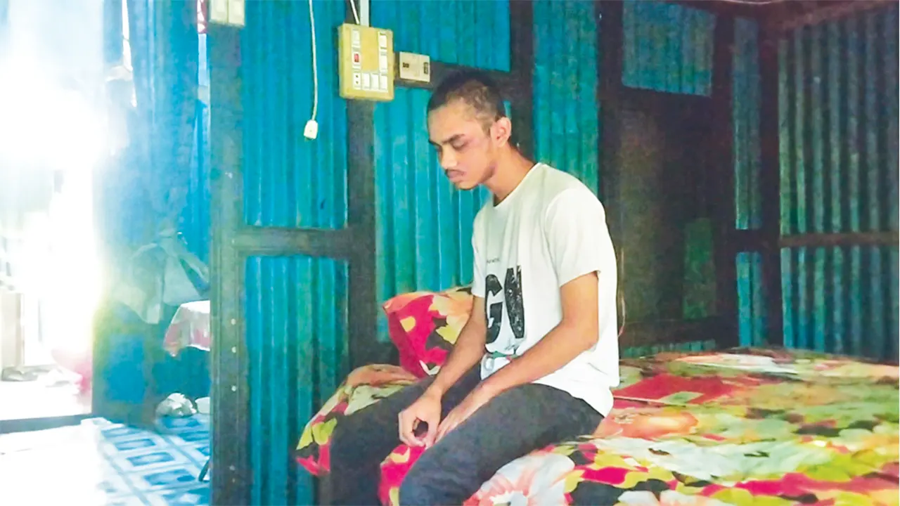 সরেজমিন দেখা যায়, নাজমা বেগম তার ছোট ছেলে মো. মবিনকে ধরে ঘরের বাইরে বের করছেন। বড় ভাই প্রতিবন্ধী জুলহাস একা একা হাসে আর কী যেন বলার চেষ্টা করে। বাড়িটিতে ঢুকতেই হাতের বাম দিক একটি নতুন কবরের দেখা মিলে। এটি মবিনের বাবার কবর। মবিন কালবেলাকে জানান, প্রতিদিনের মতো ১৮ জুলাই সকালে কাজের জন্য দোকানে যান তিনি। দোকানে ঢোকার কিছু সময় পরই মিছিল বের হয়। তখন মবিন দোকান বন্ধ করে মিছিলে যোগ দেন। মিছিলটি উত্তরা থানার সামনে গেলে, থানা থেকে মিছিলটি লক্ষ্য করে এলোপাতাড়ি গুলি ছুড়তে থাকে পুলিশ। পুলিশের ছররা গুলিতে তার মাথা ঝাঁঝরা হয়ে যায় এবং একটি বুলেট তার বাম চোখের ওপরের দিক দিয়ে ঢুকে ডান দিক দিয়ে বেরিয়ে যায়। তখন তিনি মাটিতে পড়ে যান। কয়েকজন তাকে উদ্ধার করে হাসপাতালে নিয়ে যায়। মবিনের ভাই নাজমুল হুদা পলাশ কালবেলাকে বলেন, ঘটনার দিন আমি বাসাতেই ছিলাম। সকাল সাড়ে ১১টার দিকে আমার মোবাইল ফোনে কল আসে। আমাকে বলে, আপনি কি মবিনের ভাই পলাশ। আমি হ্যাঁ বলতেই তিনি বলেন, আপনি দ্রুত সোহরাওয়ার্দী হাসপাতালে চলে আসেন। আপনার ছোট ভাই মবিন পুলিশের গুলিতে আহত হয়ে হাসপাতালে আছে। আমি তখন দ্রুত সোহরাওয়ার্দী হাসপাতালে গিয়ে অনেক খোঁজাখুঁজি করে আমার ভাইকে পাই। তখন ওর পুরো মাথা সাদা কাপড়ে মোড়ানো।