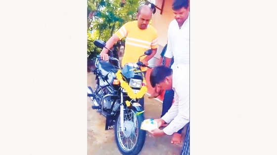 ভিডিওতে দেখা গেছে, বাইকের সামনের চাকায় বাঁধা রয়েছে একটি ছুরি। এরপর সেখানে আনা হয় একটি কেক। চাকায় বাঁধা সেই ছুরি দিয়ে কেক কেটে মোটরসাইকেলের জন্মদিন উদযাপন করা হয়। তখন এর চারপাশে দাঁড়িয়ে থাকা লোকজন হাততালি দেন।