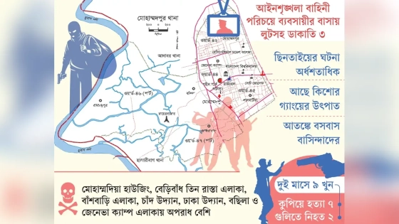 দুই মাসে ৯ খুন, চুরি-ডাকাতি দিনদুপুরেই: মোহাম্মদপুর এলাকায় গত আড়াই মাসে ঘটে যাওয়া অপরাধকাণ্ড বিশ্লেষণ করে দেখা গেছে, এই সময়ে ওই এলাকায় হত্যাকাণ্ড ঘটেছে ৯টি। এর মধ্যে সাতজনকে কুপিয়ে এবং দুজনকে গুলি করে হত্যা করা হয়। নিহতদের মধ্যে ছিনতাইকারীদের হাতে একজন, মাদক কারবার নিয়ে দ্বন্দ্বে পাঁচজন এবং আধিপত্য বিস্তারের রেষারেষিতে দুগ্রুপের দ্বন্দ্বে প্রাণ গেছে বাকি তিনজনের।