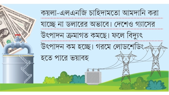 গ্যাস সংকট বিদ্যুৎ উৎপাদনে বড় বাধা হয়ে দাঁড়িয়েছে। দেশীয় গ্যাস উৎপাদন কমার পাশাপাশি এলএনজি আমদানির জন্য প্রয়োজনীয় অর্থের অভাব পরিস্থিতি আরও জটিল করে তুলেছে। সংকট নিরসনে দ্রুত কার্যকর উদ্যোগ গ্রহণ না করলে গ্রীষ্মকালে বিদ্যুৎ সরবরাহে বড় ধরনের সমস্যা দেখা দিতে পারে।