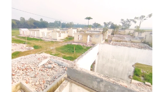 গত সোমবার সরেজমিন দেখা যায়, সেখানে যেন টর্নেডো বয়ে গেছে। ধ্বংসস্তূপে পরিণত হয়েছে প্রকল্পটি। সুনসান নীরবতা। কেউ নেই। প্রকল্পের ৬০টি ঘরের সবই ভাঙাচোরা। দরজা, জানালা, টিন, ইটের দেয়াল কোনোকিছু অবশিষ্ট নেই। ভেঙে ফেলা ইট-সুরকি চারদিকে ছড়িয়ে ছিটিয়ে রয়েছে। কোনো ঘর সবটুকুই ভাঙা, কোনোটি অর্ধেক। ভেঙে ফেলা ঘরে লোহার রড বেরিয়ে রয়েছে। প্রায় প্রতিটি ঘরের সামনে ও আশপাশে শাকসবজি আবাদ রয়েছে।