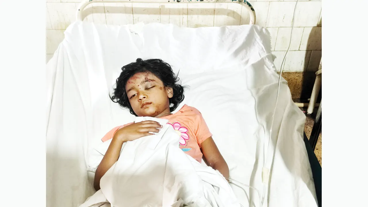 চট্টগ্রাম মেডিকেল কলেজ হাসপাতালের ২৮ নম্বর ওয়ার্ডের শয্যায় শুয়ে কাতরাচ্ছে ছোট্ট শিশুটি। হাতে স্যালাইন লাগানো। কপালে ছোপ ছোপ রক্তের দাগ। হাতেও দেখা যাচ্ছে শুকিয়ে যাওয়া রক্তের দাগ। দুই চোখ বন্ধ। মাঝেমধ্যে এক চোখ কোনোমতে খুলতে পারলেও অন্য চোখ খুলতে পারছে না। এক চোখ খুলে কিছুক্ষণ পরপর ফ্যালফ্যাল করে চারদিকে তাকায়। বিড়বিড় করে কারও সন্ধান জানতে চায়। আবার চোখ বন্ধ করে ফেলে।