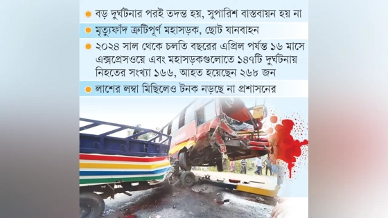 এ ছাড়া বিগত দিনের দুর্ঘটনা এবং তদন্ত নিয়ে জানতে চাওয়া হলে তিনি বলেন, বাস মালিক ও শ্রমিকদের নিয়ে একটি সভা করা হবে। সভার সিদ্ধান্ত বাস্তবায়নে সংশ্লিষ্ট প্রতিষ্ঠানগুলোর দায়িত্ব বুঝিয়ে দেওয়া হবে। সম্মিলিত উদ্যোগ না নিলে সুপারিশ বাস্তবায়ন হওয়া কঠিন। পাশাপাশি নিয়মিত মনিটরিং করা হবে। তাহলে দুর্ঘটনা অনেকাংশে কমে আসবে।