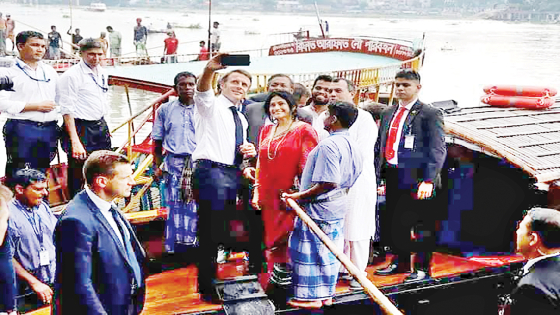 তুরাগে নৌকা ভ্রমণ: মাখোঁ ঢাকা ছাড়ার আগে গতকাল দুপুর ১টার দিকে বৃষ্টির মধ্যেই রাজধানীর তুরাগ নদে নৌকায় ঘুরে বেড়িয়েছেন। এ সময় তার সঙ্গে ছিলেন ফ্রান্সের ইউরোপ ও পররাষ্ট্রবিষয়ক মন্ত্রী ক্যাথরিন কোলোনা, তথ্য ও সম্প্রচারমন্ত্রী হাছান মাহমুদ, প্রধানমন্ত্রীর পরিবেশ ও জলবায়ুবিষয়ক বিশেষ দূত সংসদ সদস্য সাবের হোসেন চৌধুরী, ঢাকায় নিযুক্ত ফ্রান্সের রাষ্ট্রদূত মারিয়ে মাসুদুপুয়ে। যদিও এই নৌভ্রমণ নির্ধারিত ছিল না। বেসরকারি সংস্থা ফ্রেন্ডশিপের ‘ফ্লেচে ডি অর’ নামের নৌকায় করে ভ্রমণ করেন তিনি। এ সময় সংস্থার নির্বাহী পরিচালক রুনা খানও সঙ্গে ছিলেন। সে সময় সেখানে চলমান নৌকাবাইচও উপভোগ করেন ফরাসি প্রেসিডেন্ট। তুরাগ পাড়ে সাধারণ মানুষের সঙ্গে শুভেচ্ছা বিনিময় করেন। সড়কের পাশের হোটেলের শিঙাড়া ও জিলাপির স্বাদও নেন। তথ্যমন্ত্রী তার ফেসবুক পোস্টে ছবি দিয়ে বলেন, তুরাগ নদে নৌকা ভ্রমণের পর ফ্রান্সের প্রেসিডেন্টের সঙ্গে সেলফি। তিনি নৌকা ভ্রমণ অনেক উপভোগ করেছেন।