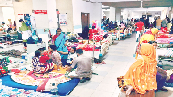 দীর্ঘমেয়াদি হচ্ছে ডেঙ্গুর ভয়াবহতা। সেপ্টেম্বরজুড়েও চলবে তাণ্ডব। জলবায়ুজনিত কারণে বছরের শেষ দিন পর্যন্ত ডেঙ্গুর প্রকোপ থাকার আশঙ্কা করছেন কীটতত্ত্ববিদরা। প্রতিদিন গড়ে প্রায় ৩ হাজার ডেঙ্গু রোগী ভর্তি হন হাসপাতালে। সরকারি তথ্যমতে, আক্রান্তের প্রায় ৭০ শতাংশ রোগী সরকারি হাসপাতালে চিকিৎসা নেন। ডেঙ্গুর প্রকোপে অন্য রোগীদের চিকিৎসা ব্যাহত হচ্ছে। যদিও এখন প্রতিদিন হাসপাতালে ভর্তি রোগীর তিন ভাগের দুই ভাগ ঢাকার বাইরে ভর্তি হন। তবু ঢাকার হাসপাতালে রয়েছে ডেঙ্গু রোগীর চাপ।