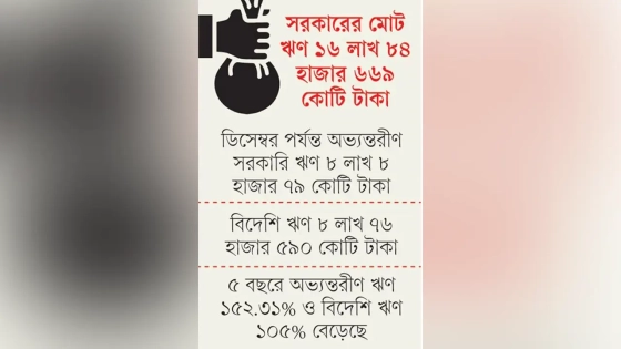 কেন্দ্রীয় ব্যাংকের হালনাগাদ প্রতিবেদনে দেওয়া তথ্যানুযায়ী, অভ্যন্তরীণ ও বিদেশি ঋণ মিলিয়ে গত ডিসেম্বর পর্যন্ত সরকারের মোট ঋণ দাঁড়িয়েছে ১৬ লাখ ৮৪ হাজার ৬৬৯ কোটি টাকা। দেশের জনসংখ্যা বিবেচনায় নিলে মানুষের মাথাপিছু ঋণ দাঁড়ায় ৯৯ হাজার ৩৭৫ কোটি টাকা। অবশ্য মাথাপিছু ঋণের তুলনায় আয় এখনো বেশি। দেশের মানুষের বর্তমান বার্ষিক মাথাপিছু আয় ২ হাজার ৭৯৩ ডলার, যা বাংলাদেশি মুদ্রায় ৩ লাখ ৭ হাজার ২৩০ টাকা। অবশ্য আয় বেশি থাকলেও ঋণের ঝুঁকিই এখন মাথাব্যথার কারণ হয়ে দাঁড়িয়েছে।